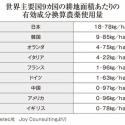 最初に、『日本の農薬基準は世界最悪』です。日本は世界一の農薬使用量を誇る国になっています。韓国や中国も農薬使用量が増えていますが、それを超えて日本は世界一です。「日本の野菜は世界で一番危険」です。日本に旅行で来る外国人が「日本の野菜は食べない方がいい」と ...