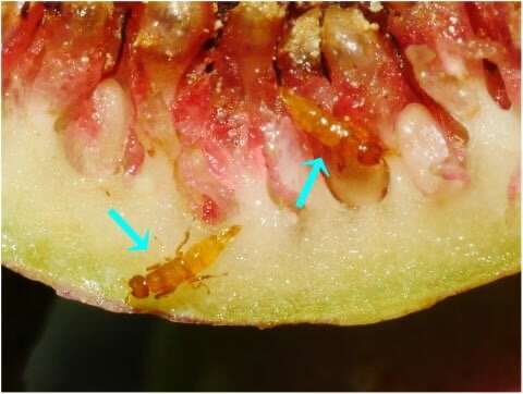 幼虫はイチジク内部の花を食べながら成長し、やがて羽化します。