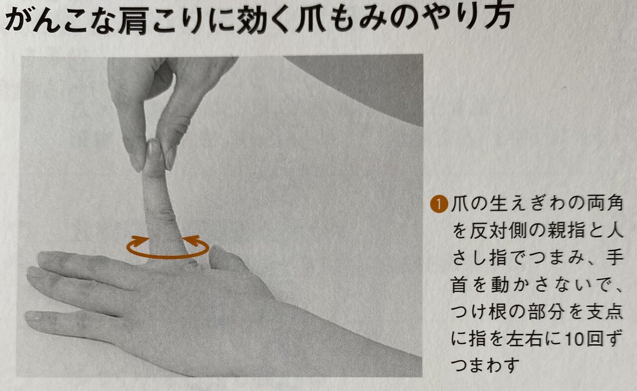 ◯肩こり、首の痛みに効く爪もみ
