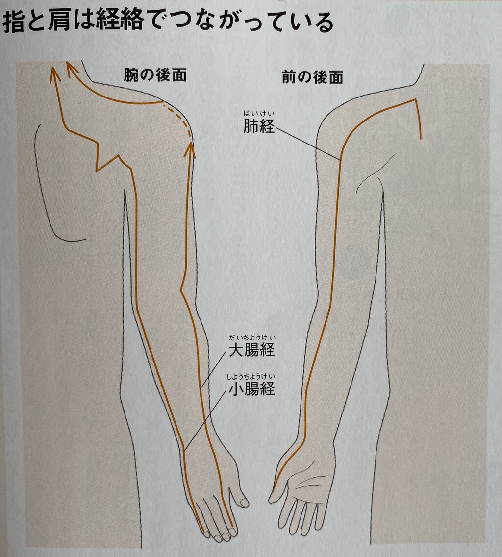 につながります。この3本の指を刺激すれば、首・肩の周囲の気の流れは良くなります。